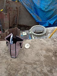 26. Juni 2005: Mitarbeiter kommen nach Abschluss der unterirdischen Arbeiten wieder nach oben und besprechen die gefundenen Daten. |