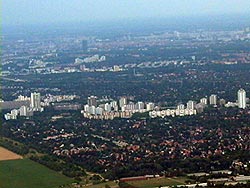 Luftaufnahme aus der Zeppelin-Untersuchungsstation am 23. April 2004: Die Staubwolken über dem Richardplatz sind klar zu erkennen. |